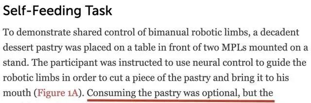 使用刀叉对普通人来说并不难,但对于脑机接口系统来说,两个机械臂共有34个自由度需要操控。